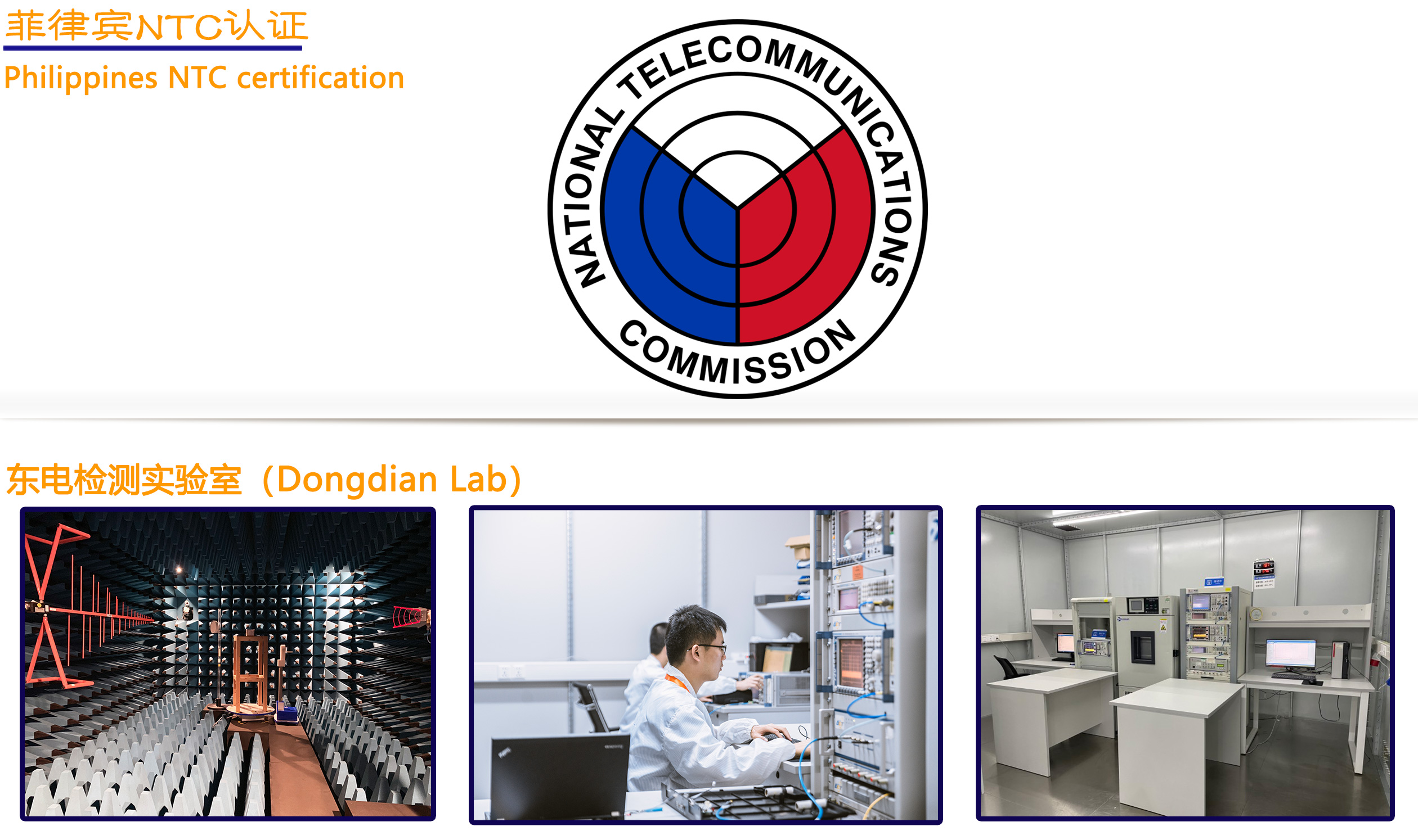 菲律宾国家电信委员会NTC全称National Telecommunications Commission,负责菲律宾的无线和电信业务管制。所有进入菲律宾市场的无线和电信类产品,必须取得菲律宾NTC认证许可。