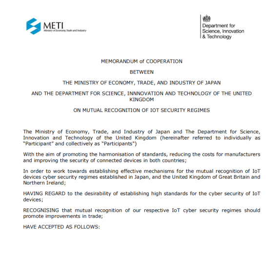 二、日本与英国签署 IoT 网络安全认证互认协议